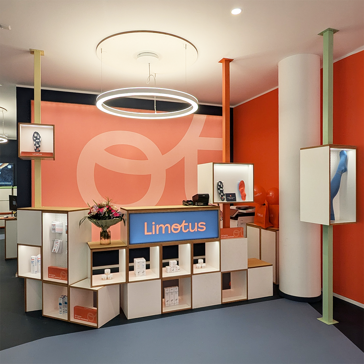 Für dieses Projekt entwickelten wir das komplette Ladenkonzept – vom Entwurf über das Farb- und Materialkonzept bis hin zur maßgefertigten Möblierung. Klare Formen, modulare Präsentationsflächen und eine prägnante Farbwelt schaffen einen modernen, wiedererkennbaren Markenraum.