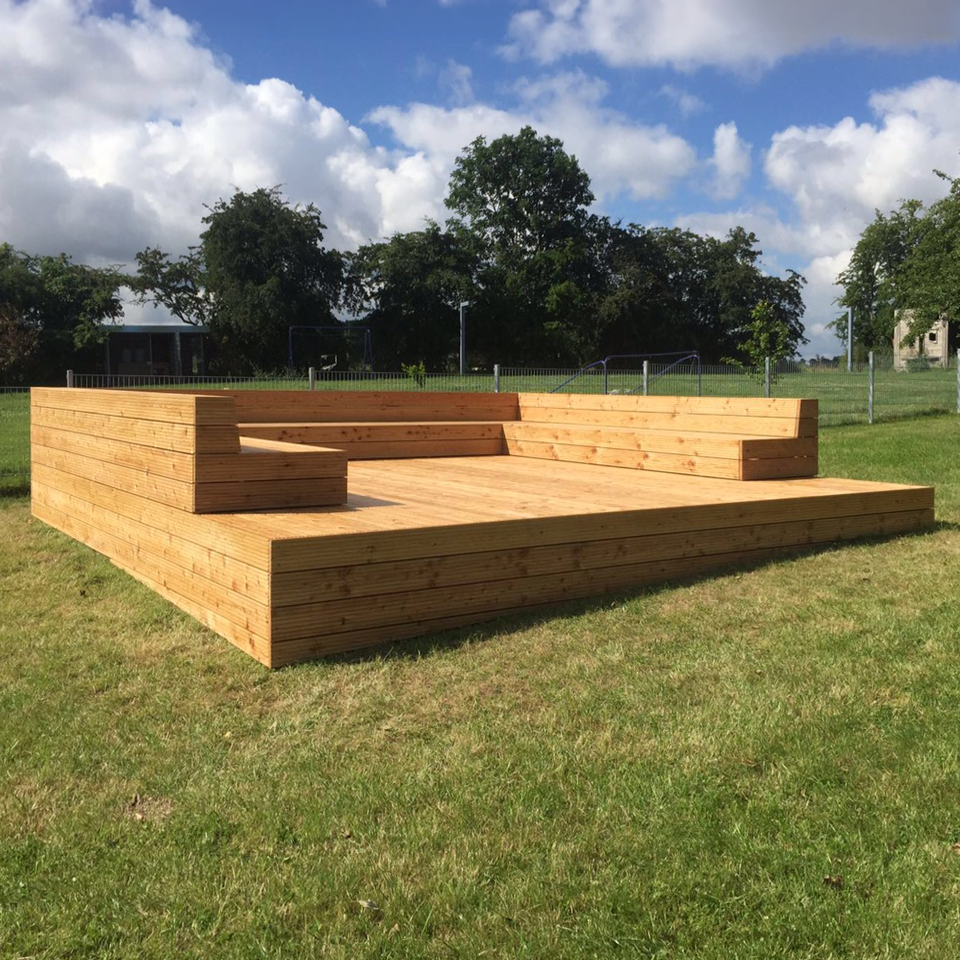 Für ein Ferienhaus entwickelten und fertigten wir diese maßgefertigte Terrassenplattform mit integrierten Sitzmodulen. Die klare, reduzierte Formensprache fügt sich harmonisch in die natürliche Umgebung ein und schafft einen ruhigen Ort zum Verweilen.