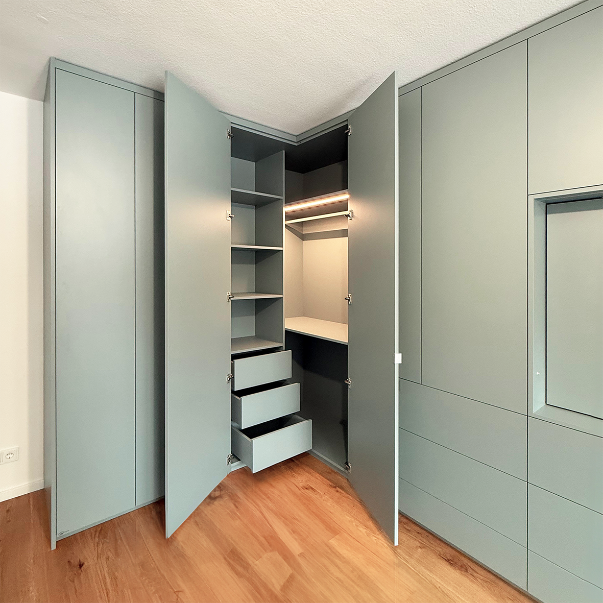 Räume zum Ankommen und Bleiben. Gemeinsam mit unserenKundinnen und Kunden entwickeln wir maßgefertigte Möbel und ganzheitlicheRaumkonzepte – präzise geplant, handwerklich gefertigt und dauerhaft gedacht.