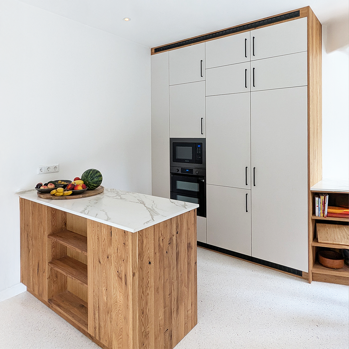 durchdacht geplant mit 30 Schubkästen, Hochschrank und zentraler Kochinsel – maximaler Stauraum, perfekt organisiert