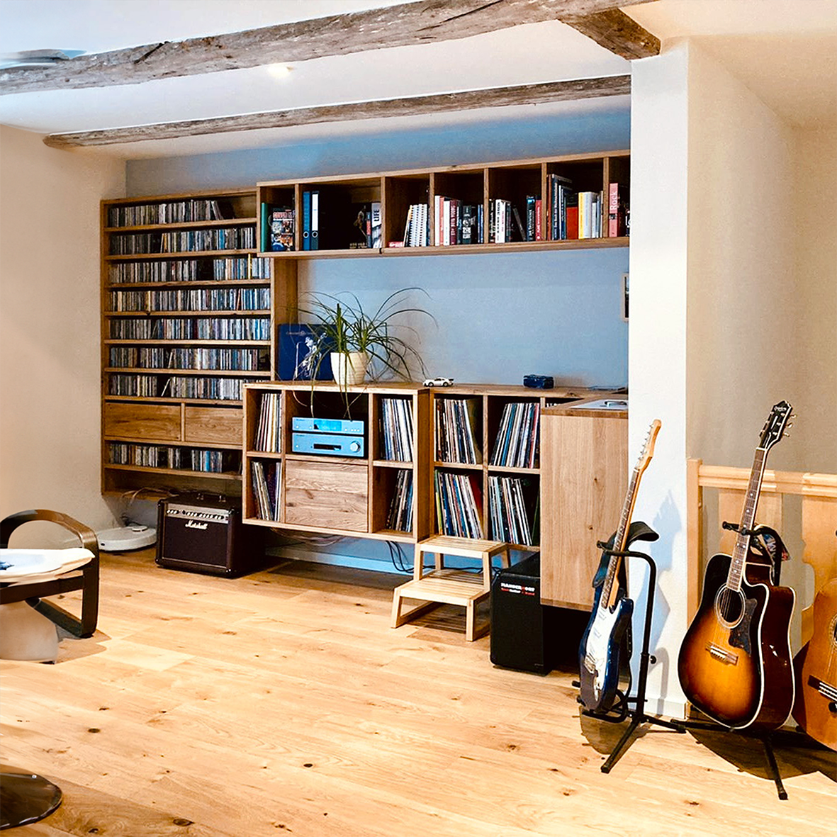 mit passgenauen Stauraumlösungen für CDs, LPs und Musikequipment